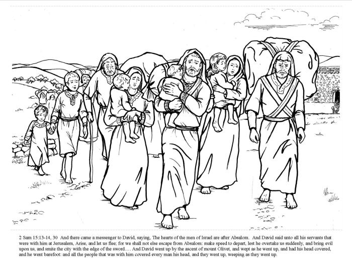 And there came a messenger to David, saying, The hearts of the men of Israel are after Absalom. And David said unto all his servants that were with him at Jerusalem, Arise, and let us flee; for we shall not else escape from Absalom: make speed to depart, lest he overtake us suddenly, and bring evil upon us, and smite the city with the edge of the sword. And the king’s servants said unto the king, Behold, thy servants are ready to do whatsoever my lord the king shall appoint. And the king went forth, and all his household after him. And the king left ten women, which were concubines, to keep the house (2 Sam 15:13-16).